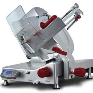 The fully automatic gravity feed belt driven NOAW NS350HDX Meat Slicer takes the hard work out of slicing. It is fast, clean, precise and very easy to operate and features two independent motors, one for blade rotation and the other for carriage movement.The NS350HDA is suited to large restaurants, supermarkets, delicatessens and butcher shops where high volume slicing of a variety of meat types is required and precise control of the automatic slicing feature is necessary. Model NS350HDX comes with factory fitted speedy blade remover device to ensure absolute safety should the blade ever need to be removed for maintenance.